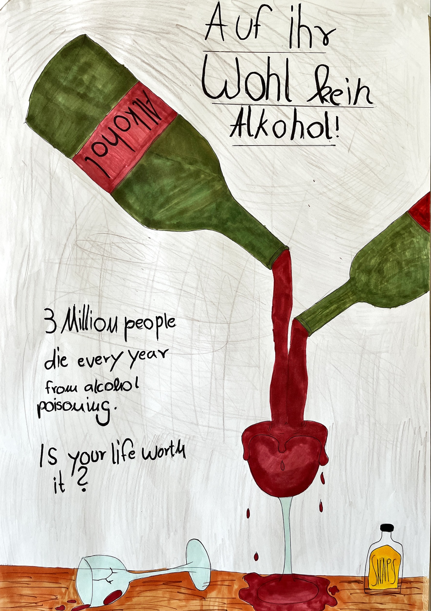 Nach dem Infoteil wurde es kreativ: In kleinen Gruppen gestalteten die Schülerinnen und Schüler Plakate oder Stop-Motion-Videos, um ihre Eindrücke, Gedanken und Botschaften zu den Themen Alkohol, Rauchen und Cannabiskonsum festzuhalten. Dabei sind viele originelle und nachdenkliche Ergebnisse entstanden. Am Tag der offenen Tür dürfen unsere Besucher dann darüber abstimmen, welches Plakat und welcher Film einen Kinogutschein als Preis gewinnen.