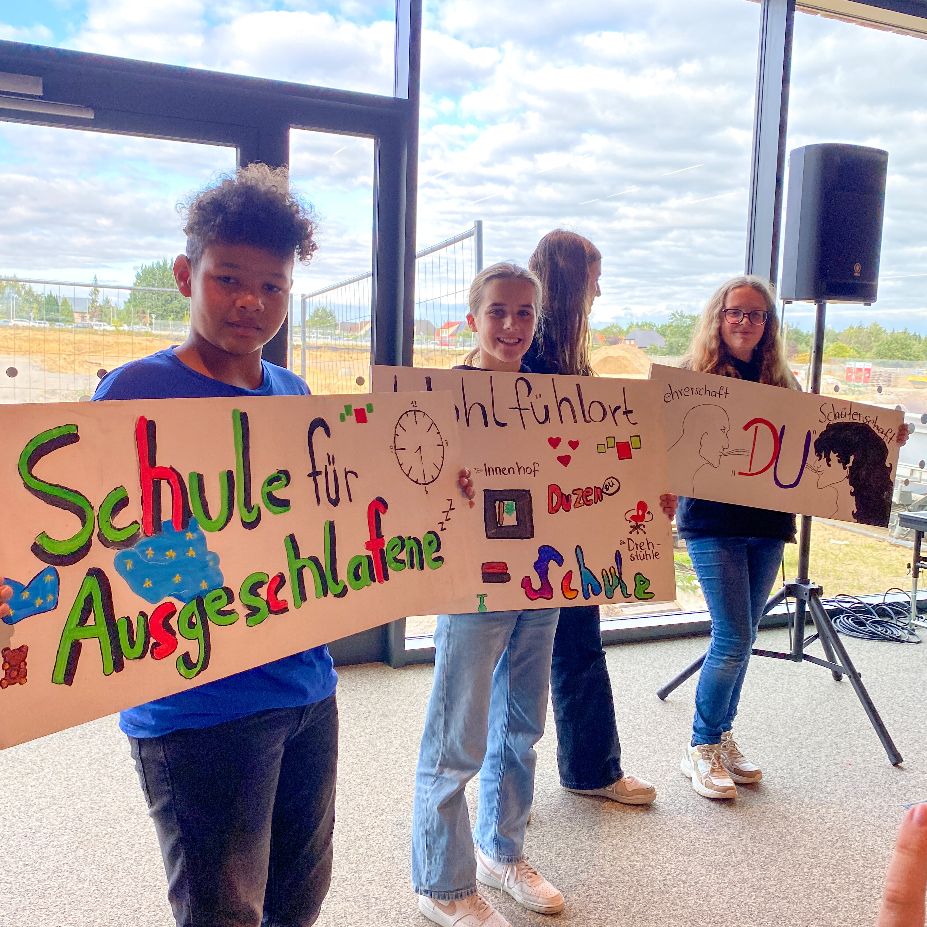 Unser Slogan lautet „Die Schule für Ausgeschlafene“, denn der Unterricht beginnt 8.30 Uhr.